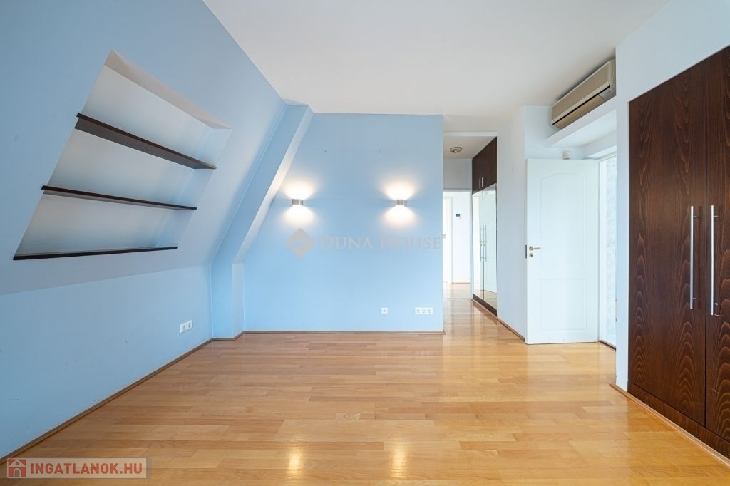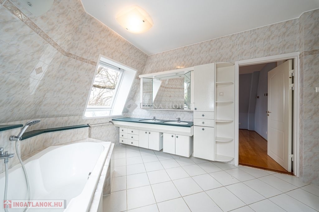 Budapest II. kerületének egyik legértékállóbb, zöldövezeti részén kínálunk megvételre egy 292 m²-es, háromszintes, panorámás családi házat, amely a privát tér, a csend és a kifinomult életvitel ritka egyensúlyát teremti meg.