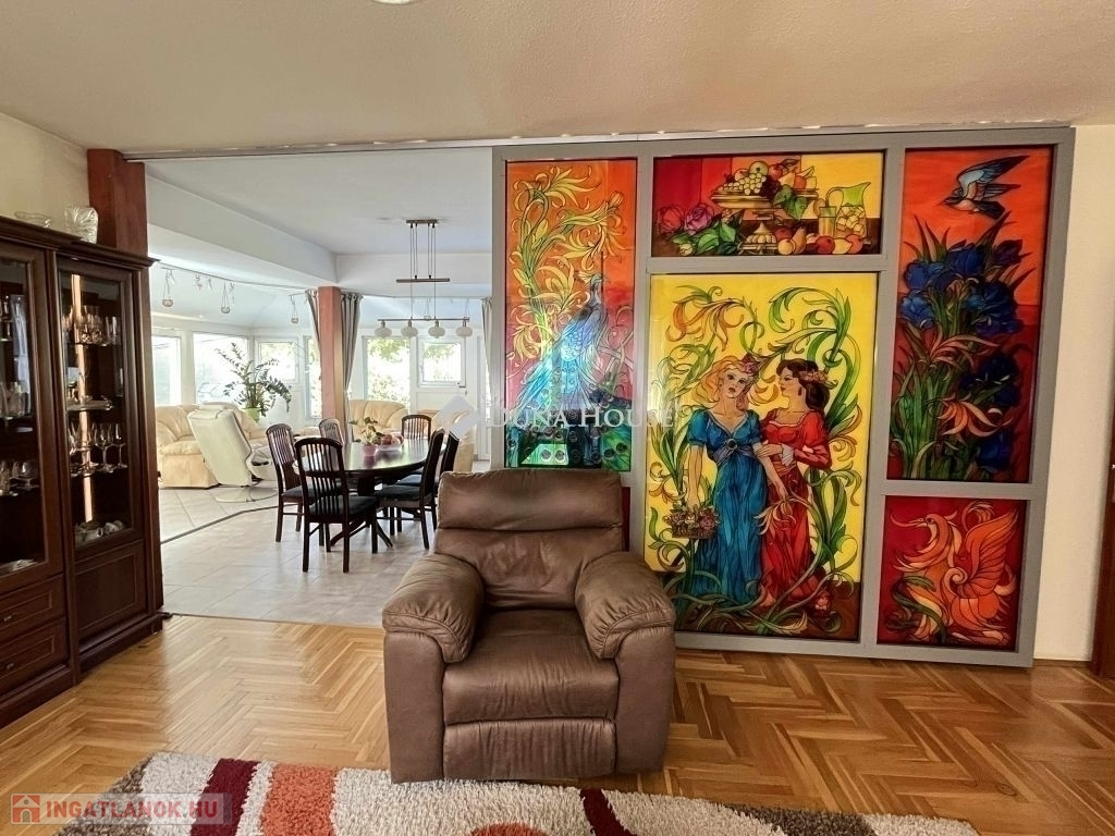 Ez egy nagyon komplex ingatlan.Hivatalosan is 2-lakásos + ipari tevékenységi engedéllyel egy ma is működő profi autószerelő szakszervízzel Budapest II.kerület Széphalom központjában, mégis csendes utcában, mindenhez is közel. 1142 m2 csodás telken, 3 szinten, összesen 360 m2 időtálló minőségi és megbízható műszaki megoldásokkal. Az ingatlan : - 1988-ban épült, Ph 38-as tégla + 10 cm hőszigetelés, monolit födém + Bramac cserép - Fűtése : Viessmann gázkazán + hűtő-fűtő klíma - hivatalosan is 2 generációs, így az államilag támogatott földgázmennyiség 2x-t kapja- riasztó- és kamerarendszer- műanyag, szunyoghálós és redőnyös ablakok a földszinten, a tetőtérben SOFA ablakok- 2 autó beállására alkalmas garázs- 2009-ben teljeskörű felújítás, külső szigetelés, nyílászárók cseréje, elektromos hálózat cseréje, tető- és ereszcsatornafelújítás A belső tér : - tetőtérben önálló, különbejáratú lakrész lett kialakítva- neves üvegművész tervei alapján készült különleges üveg tolóajtó a nappali és étkező elválasztására - igényes és funkcionálisan jól hasznáható, átgondolt belső terek és rengeteg tárolóhely - kiválóan alkalmas sokgyerekes családoknak vagy több generáció összeköltözésére is- 360 m2 lakóterület 3 szinten, kitűnő állapotú családi ház - finn és infraszauna a fürdőbenA kert : - 1142 m2 gondozott kert öntözőrendszerrel és robotfűnyíróval - 30 m2 beépített terasz közvetlen átjárással a nappaliba, a teraszon fedett 6 x 3 x 1,5 m mély medence- 30 m2 nyitott terasz a medence mellettA szerviz :- működő és bejáratott szakszervíz- 2 emelő a 3 méter belmagasságú térben + szerelőakna- vállalkozási engedély az önkormányzattól - gépjárműjavítás, gépkölcsönzés, alkatrészeladás, rekreációs tevékenységA környék : - Hidegkút-Széphalom központjában,csendes és biztonságos utca- buszmegálló 1 perc,közelben óvoda és iskola 5 perc gyalogosan- orvosi rendelők, bevásárlási lehetőségekEz a kiváló adottságokkal rendelkező, kellemes hangulatú, remek életteret biztosító családi otthon ideális azok számára, akik igényes és stílusos környezetben szeretnének élni, akár több generáció is együtt, kényelmesen.