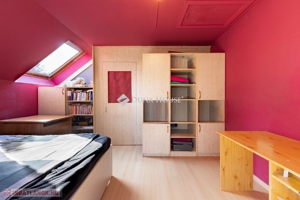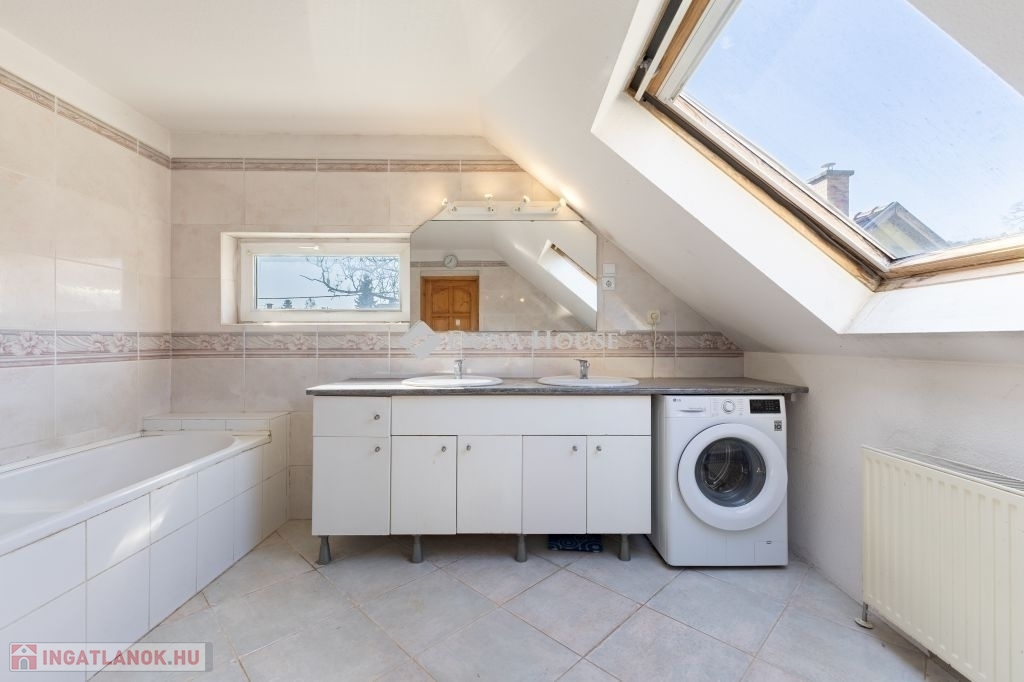 A ház 2000-ben épült, teljes közművel ellátott. A földszinten nappali, konyha, hálószoba, valamint egy kisebb, zuhanyzós fürdőszoba kapott helyet, WC-vel. A tetőtérben további két szoba és egy tágas, káddal felszerelt fürdőszoba található. Az emelethez erkély, a földszinthez pedig terasz kapcsolódik.