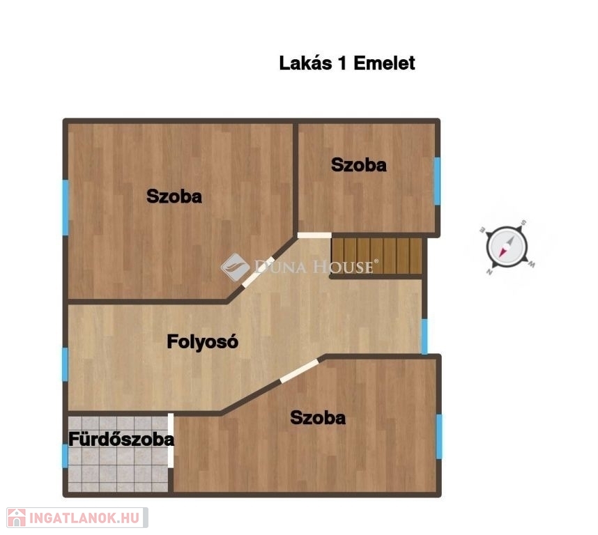 - Mindkét lakás kétszintes, beépített tetőtérrel