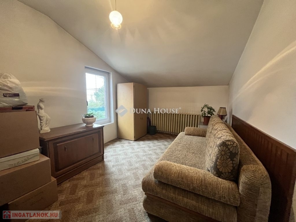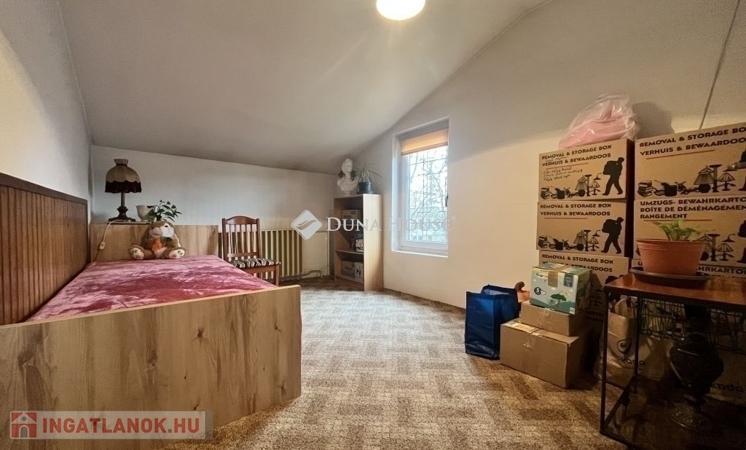 Az emeleti szinten további három külön nyíló szoba található, valamint egy kádas fürdőszoba. Az egyik helyiségből egy kényelmes méretű erkély is elérhető, amely tovább növeli az ingatlan komfortját.