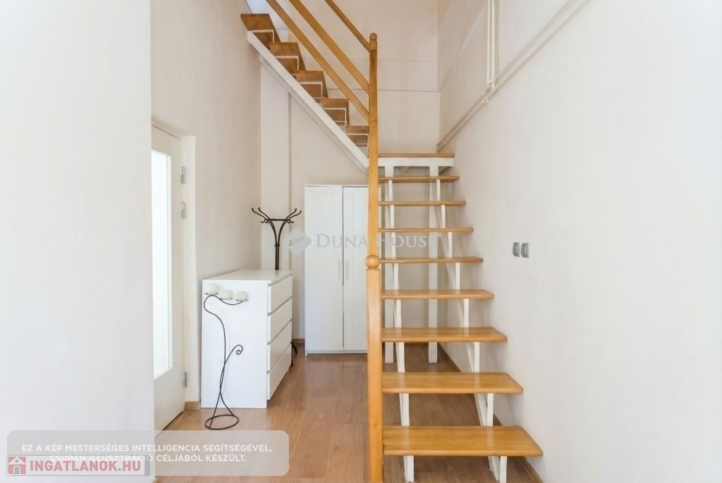 Az előszobából lépcső vezet fel a két tetőtéri szobába, ahol a kisebbik szoba gardróbbal is ellátott. Természetesen itt is fürdő-wc kiépítésre került.