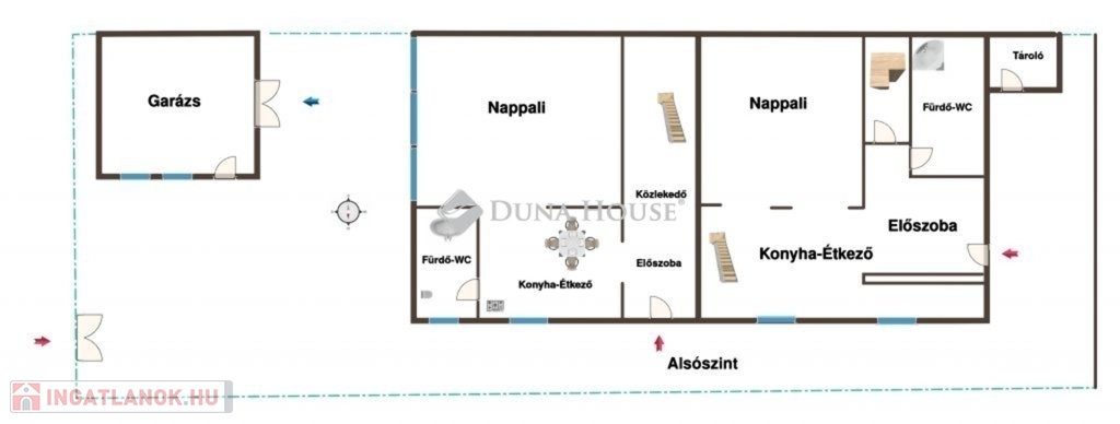 Az ikerház első fele belépve az ajtón egy kényelmes előszobát, balra egy konyharészt, konyhaszigetet, majd egy igazán tágas, fényekben úszó, kikapcsolódást biztosító nappalit rejt.