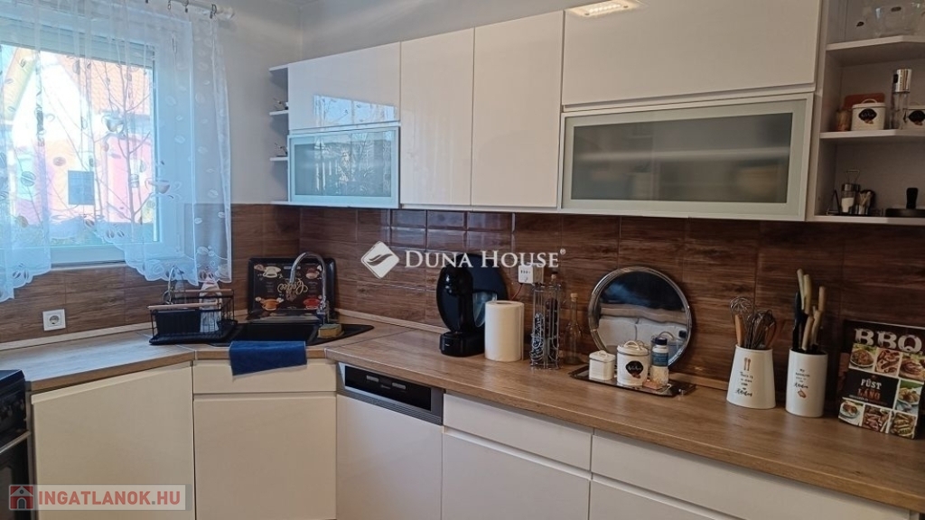 A felújítás során kiemelt figyelmet fordítottak a minőségi anyagok használatára, és arra, hogy a belső terek luxus érzetét keltés mellett is praktikusak maradjanak. A terasz a nappaliból nyílik innen közvetlenül a kertbe léphetünk ki, ami kiváló helyszínt biztosít a családi és baráti összejövetelek számára.A felújítás srán 10 cm-es dryvit került a külső falakra