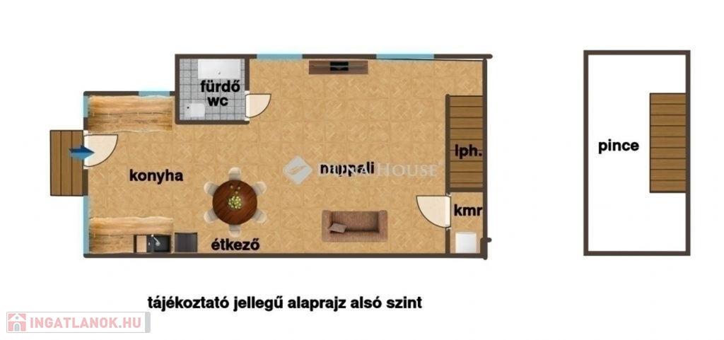 A nappali alatt található 10 négyzetméteres pincében is kialakítható egy mini wellness. Jelenleg remek tárolási lehetőséget nyújt és teljesen száraz!