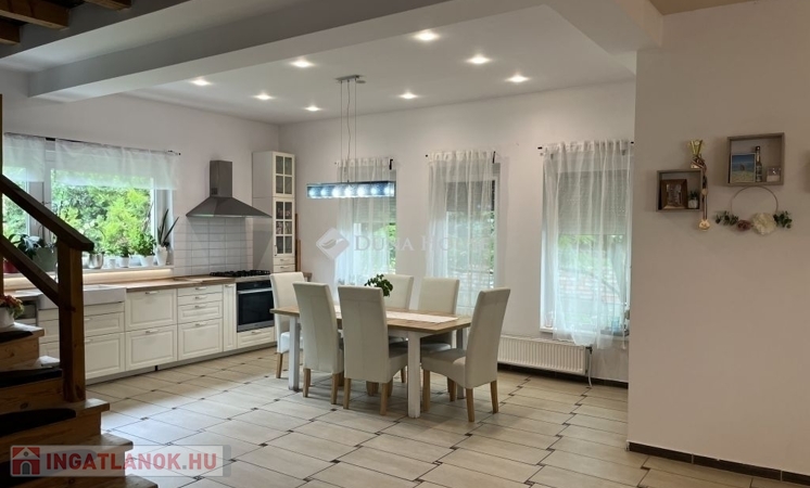 Dunakeszi központi részén eladó egy kiváló adottságú, kétgenerációs családi ház, amely ideális választás nagyobb családoknak, valamint azoknak, akik otthonuk mellett szeretnének műhelyt, irodát vagy vállalkozási teret kialakítani.