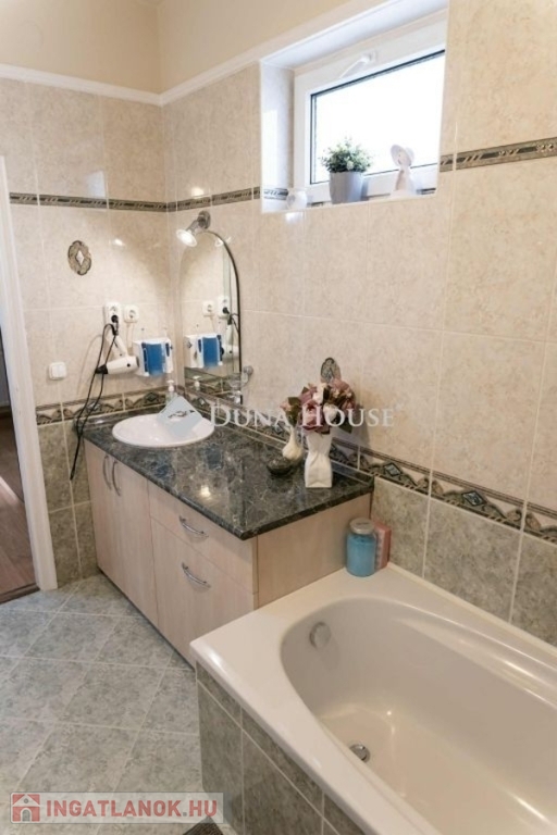 Dunakeszi központi részén, csendes, rendezett utcában elhelyezkedő elegáns, nagy terekkel rendelkező, két generáció részére is alkalmas 224nm-es családi ház eladó.