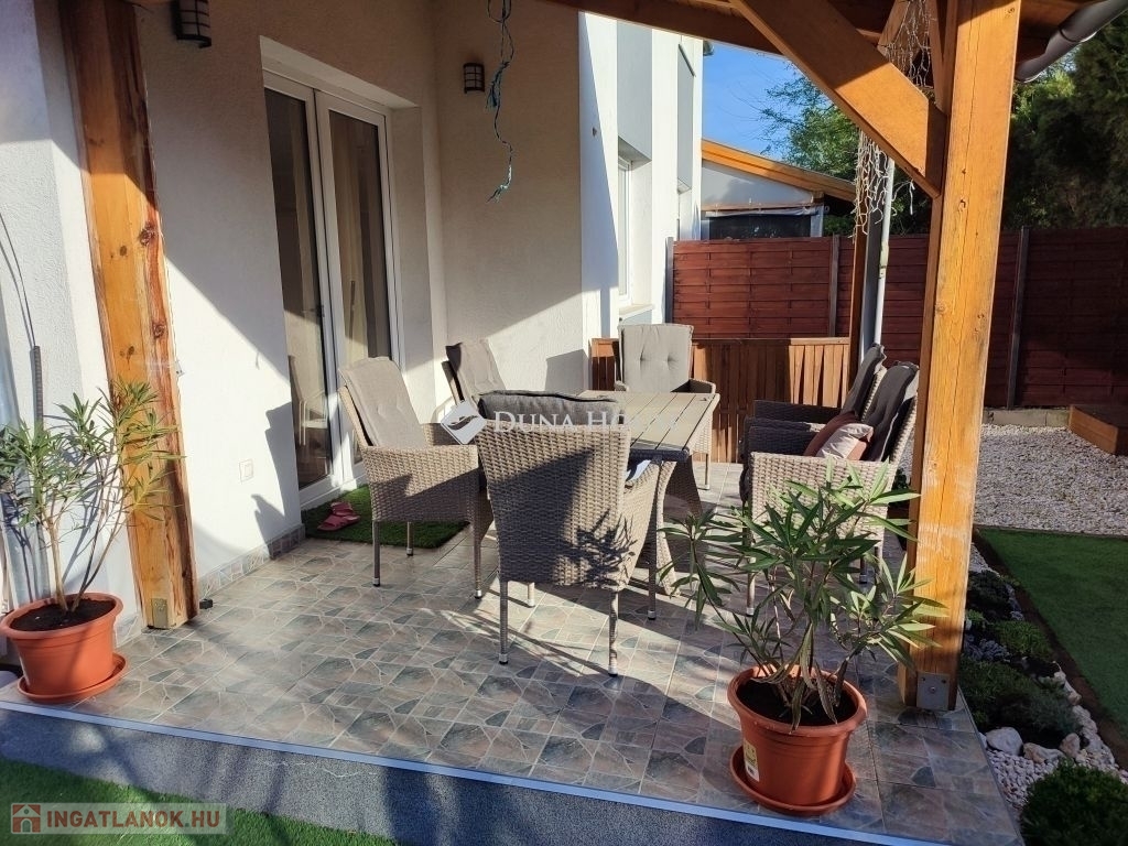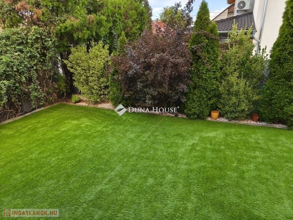 Az ingatlanhoz tartozik egy 250m-es kert, mely prémium minőségű műfűvel borított így igen alacsony fenntartási költséget von maga után. Az udvar méretéből adódóan kiválóan alkalmas baráti és családi összejövetelekre, ahol nyugodtan kihasználhatjuk a környék adta nyugalmat. A szomszédság kedves és csendes, mely elengedhetetlen egy nyugodt Életvitelhez, jó lakóközösség jellemzi a környéket.