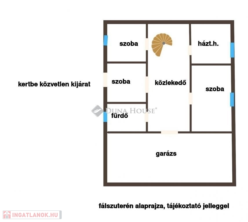 - 3 szoba, amiből az egyikből közvetlen kijárat van a kertbe,
