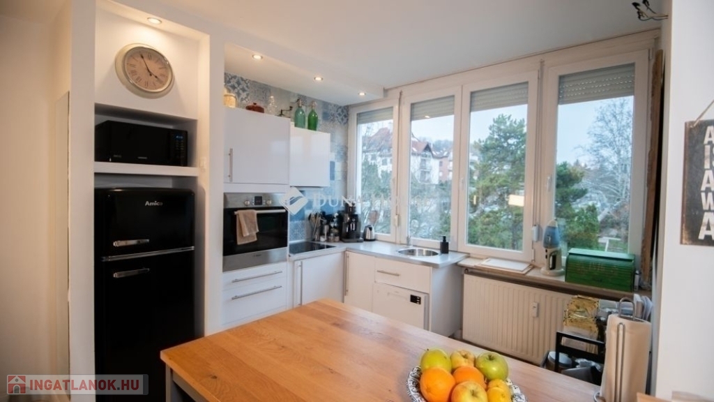 Eladó lakás Zöldmálon – panorámás, felújított, szuper helyen!Ha egy igazán hangulatos, napfényes otthont keres Budapest egyik legjobb környékén, akkor ez a 4. emeleti, 60 m²-es (plusz 3 m² előszoba), csúsztatottzsalus, lodzsás lakás Önnek szól! A Felső Zöldmáli úton, a Hello Buda és a Rózsadomb Center közelében található, így minden kéznél van.Mit kell tudni a lakásról? Elrendezés: Tágas hálószoba, világos nappali, külön konyha és étkező, fürdőszoba, külön WC, közlekedő, egy engedéllyel bővített előszoba és fedett lodzsa. Lift nincs. Fekvés: Dél-Nyugati tájolás – világos, csendes, nyugalmas. A kilátás a „Rózsadombra” és a zöld kertre nyílik. Felszereltség: Egyedi mérős házközponti fűtés, plusz klíma.A ház és a környék: Nagy kert közös használatra, játszótérrel a gyerekeknek. Ingyenes parkolás közvetlenül a ház előtt. Közös zárható tároló is tartozik a lakáshoz.Elhelyezkedés és közlekedés:Minden fontos hely gyalog elérhető: boltok, gyógyszertár, óvoda, iskola, éttermek, kávézók.A Kolosy tér, Széll Kálmán tér, Batthyány tér és Pasarét is gyorsan megközelíthető busszal.Ez a lakás tökéletes választás, ha nyugodt, zöldövezeti környezetben szeretne élni, de mégis közel maradna a városi nyüzsgéshez!Ha megnézné személyesen, hívjon bátran!