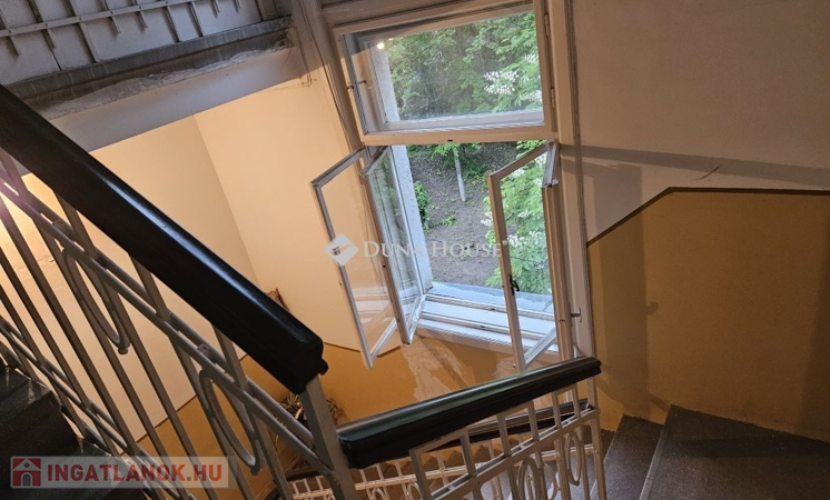 DUNÁRA NÉZŐ PANORÁMÁVAL rendelkező, különleges lakás eladó Rózsadombon!Az 1935-ben épült VILLAÉPÜLET 2. emeletén, a legfelső szinten (de nem tetőtérben!) található ez a - tulajdoni lap szerint 77, a valóságban - 82 négyzetméteres hatalmas nappali + 3 hálószobás lakás. Maga a lakás az 1970-es években került kialakításra és ezen az emeleten nincs is több lakás.A tágas, világos nappaliban található 3 különleges, beépített erkély-szerű építészeti struktúra, amik olvasósarokká, vagy mini télikertekké alakíthatóak. Ebben a helyiségben 3 nagy ablak található, amelyekből csodás a kilátás! A bájos kis konyhából pedig egyenesen a Dunára lehet lelátni a Parlamenttel a háttérben. Még a fürdőszoba ablaka is a csendes, zöld környékre néz!A három hálószoba az utca felé néz, de egyáltalán nem zajos egyrészt azért, mert a kerítéstől jóval beljebb helyezkedik el az épület, másrészt mert egészen kicsi az utca autóforglama. A külön nyíló 3 hálószobát rusztikus tartógerendák teszik még hangulatosabbá.Egy szép, fákkal teli, közös belső kerttel is rendelkezik a ház!Parkolás az utcán megoldható, szabad helyek mindig vannak.A környéken jár a 191-es busz, de gyalog negyed órára már a 17/19/41-es villamosokra is felszállhatunk, amikkel hamar a Széll Kálmán térre, Déli pályaudvarra érhetünk.
