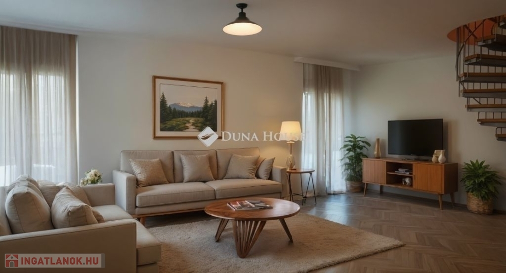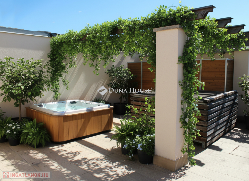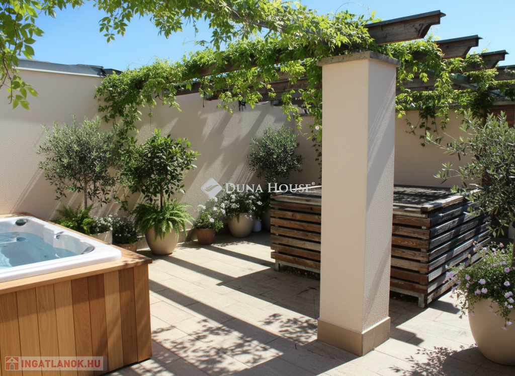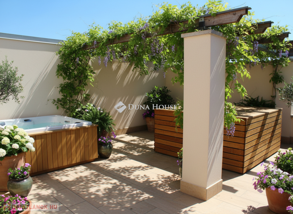 A belső kétszintes kialakítású lakásba lépve , az előszobából nyílik a hálószoba, fürdő, a tágas nappali, konyha részből elhúzható teljes üveg ajtón át léphetünk ki a 14nm2 teraszra. A felső szintre csigalépcsőn át juthatunk, ahol további egy szoba, fürdő található illetve kiléphetünk az 52 nm2-es teraszra, amely igen kellemes hely tavasztól-őszig. A lakás fűtéséről gáz cirkó készülék gondoskodik. Mindkét szinten légkondicionáló is van. A lakás napfényes, borult időben is világos. Az ingatlanhoz tartozó beálló és tároló /3nm2/,együttes értéke 10 millió forint. További kérdés esetén várom hívását!