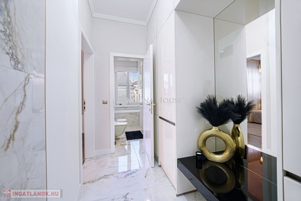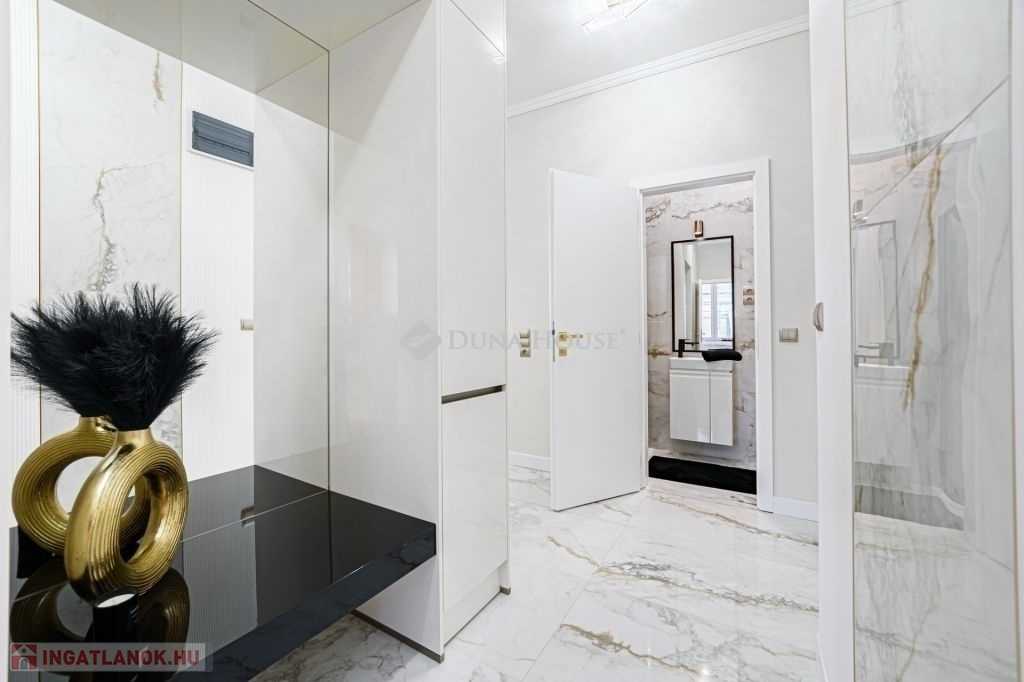 ERKÉLYES DUNAI PANORÁMÁS LUXUS KIVITELEZÉSBEN FELÚJÍTOTT 91-nm-es LAKÁS ELADÓ!2. kerület frekventált részén a Bem József utcában eladóvá vált ez a 91 nm-es, 5nm-es erkéllyel rendelkező, utcai nézetű, Dunai panorámás, napfényes, luxus kivitelezésben felújított lakás, amely egy rendezett, szép állapotú Társasház 3.emeletén található.A belsőépítészek nagy hangsúlyt fektettek a lehető legpraktikusabb elrendezésre, ezzel is minél jobban kihasználva a lakás adottságait. Így került kialakításra 2 hálószoba, 2 fürdőszoba, tágas gépesített konyha étkezővel, hatalmas nappali, tágas előszoba és egy gardrób szoba.A lakásban a bútorok egyrészt neves lakberendező által egyedileg tervezett és gyártott exkluzív, illetve egyedi olasz desing bútorokkal berendezett, melyeket még szebbé varázsolnak a gyönyörű textíliák.Minden térben található egy-egy jól használható, azaz tárolásra alkalmas beépített bútordarab, így például a lakásban lévő beépített szekrények rengeteg rakodófelületet biztosítanak az új lakók számára. A lakás továbbá teljeskörűen gépesített, mosó-szárítógéppel, mosogatógéppel, beépített minőségi konyhagépekkel, hangszigeteléssel, Daikin hűtő-fűtő klímákkal felszerelt.Hálószobák díszfalai kővel és lamellákkal burkoltak, melyek exkluzív, szép felületei egyedi és különleges hatást kölcsönöznek a térnek. Az ágyak egyedileg ide tervezett kárpit fejvégeket kaptak, melyek mögött egyedileg tervezett világítástechnika került kialakításra, hogy még hangulatosabbá tegye a hálószobákat.A fürdőszobákban kiváló minőségű szaniterek (Laufen, Blanco Blancozia, Arezzo...stb.) és a lakás stílusához illő olasz design burkolatok kerültek felhasználásra. A nappaliban és hálószobákban kiváló technikával rendelkező okos TV-k kerültek felszerelése, illetve Daikin klímák kerültek beépítésre. Neves designerek dekorációi igazán modern, mégis elegáns hangulatúvá teszik az ingatlant.A vételár tartalmazza a teljes bútorzatot és kiegészítőket!Extrák:Led világítás, Klíma, Bio kandalló, Hangszigetelés, Gránit mosogató, Egyedileg gyártott olasz bútorok, Mosható falfelületek, Bio kandalló, klímákAz elegáns megjelenést kölcsönöz ismert tervezők textíliái és dekorációs elemei.-2023-ban teljeskörű felújítás-Daikin Hűtő-fűtő Klíma-Panoráma Dunára, Margithídra-Tágas panorámás erkély-Hőszigetelt nyílászárók-Szomszédos oldalak és utca felőli falfelületek hangszigetelése-Az ablakok alumínium elektromos redőnyökkel felszerelt-Minőségi konyhagépek kerültek beszerelésre-Igényes olasz dezing bútorokkal berendezettParkolási lehetőség:A társasház mellett lévő szálloda teremgarázsában autóbeálló bérelhető vagy vásárolható.Környék:A környék frekventált, Margit híd, Margitsziget és a Duna part sétatávolságra található. A ház mellett épül a BEM projekt, itt luxus szállodát, irodaházat létesítenek, parkosítanak, korlátozzák a forgalmat.Amennyiben az ingatlan felkeltette érdeklődését, keressen bizalommal a részletekkel kapcsolatosan.FEELING OF LIFE IN BUDA..!RENOVATED 91 sqm APARTMENT WITH BALCONY AND PANORAMIC DANUBE VIEW FOR SALE!In Bem József utca, a frequented part of the 2nd district, this 91 sqm, 5 sqm balcony, street view,Danube panoramic, sunny, luxuriously renovated apartment is for sale, located on the 3rd floor of anorderly, well-maintained condominium.The interior designers put a lot of emphasis on the most practical layout possible, thus making themost of the apartment, 2 bedrooms, 2 bathrooms, a spacious mechanized kitchen with a diningroom, a huge living room, a spacious hall and a wardrobe room.The furniture in the apartment is furnished with exclusive and unique Italian design furnitureindividually designed and manufactured by a renowned interior designer, which is made even morebeautiful by the beautiful textiles.Every space has a built-in piece of furniture that can be suitable for storage, so for example the built-in wardrobes in the apartment provide plenty of storage space for the new residents. The apartmentis also fully mechanized, equipped with a washer-dryer, a dishwasher, built-in quality kitchenappliances, sound insulation, and Daikin cooling and heating air conditioners.The decorative walls of the bedrooms are covered with stone and slats, the exclusive, beautifulsurfaces of which give the space a unique and special effect. The beds were given custom-designedupholstery headboards, behind which individually designed lighting technology was installed to makethe bedrooms even more cozy.In the bathrooms, high-quality sanitary ware (Laufen, Blanco Blancozia, Arezzo...etc.) and Italiandesign coverings matching the style of the apartment were used. Smart TVs with excellenttechnology were installed in the living room and bedrooms, and Daikin air conditioners wereinstalled. Decorations by well-known designers give the property a truly modern, yet elegantatmosphere.Extras:Led lighting, Air conditioning, Bio fireplace, Sound insulation, Granite sink, Custom-made Italianfurniture, Washable wall surfaces, Bio fireplace, air conditionersTextiles and decorative elements from well-known designers give it an elegant look.- Complete renovation in 2023-Daikin Cooling-heating Air conditioner- Panorama of the Danube, Margthíd-Spacious panoramic balcony-Heat-insulated doors and windows-Sound insulation of neighboring sides and wall surfaces facing the street-The windows are equipped with aluminum electric shutters- Quality kitchen appliances have been installed- Furnished with refined Italian design furnitureParking opportunity:A parking space can be rented or purchased in the garage of the hotel next to the apartmentbuilding.Surroundings:The neighborhood is frequented, Margit Bridge, Margit Island and the Danube shore