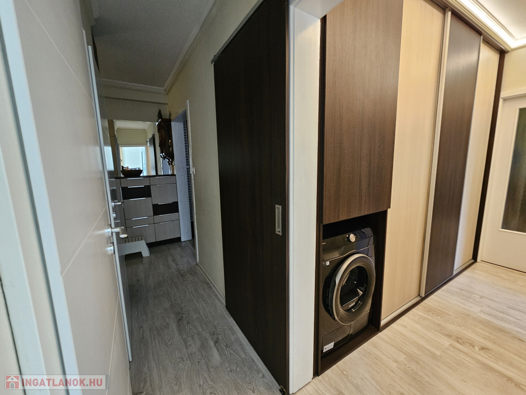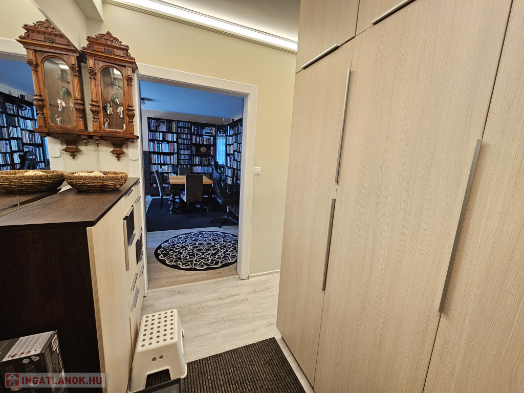 - A lakás különlegessége az egyedileg, asztalos által, prémium minőségben elkészített beépített szekrények megléte,