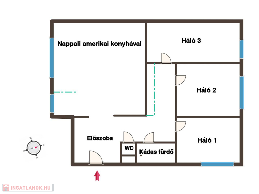 - nappali + 3 nagy méretű félszoba melyek külön nyílnak, egymástól jól elszeparáltak