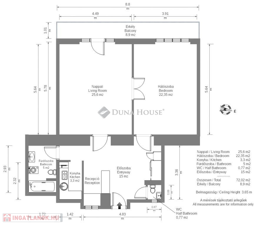 Kiváló, hosszú távon stabil befektetési lehetőség Budapest belvárosában.Eladó egy világos, 2 szobás, kivételes adottságú lakás az V. kerület szívében, a Bank Center és a Szent István Bazilika közötti szakaszon, az Arany János utcában. Az ingatlan egy gondozott, klasszikus épület 3. szintjén található (liftes ház), amely több mint száz éves építészeti karaktert őriz.A kb. 74 m²-es lakás két tágas, nyugati tájolású szobával rendelkezik, mindkettő erkélykapcsolattal. Az előtér étkezős kialakítású, konyhasarokkal, külön fürdőszobával és külön WC-vel. A lakást néhány éve felújították, kiváló műszaki állapotú, légkondicionálóval felszerelve.Az ingatlan jelenleg hosszú távú bérleti szerződés alatt áll, professzionális üzemeltető céggel, a bérleti díj mértéke pedig szerződés szerint évről évre emelkedik. A rezsi és közös költségek a bérlőt terhelik, így a hozam tervezhető és fixált.Az ingatlan kizárólag bérlővel együtt eladó.Megtekintés előzetes egyeztetéssel, jellemzően egyhetes szervezési idővel lehetséges.Kimagasló befektetés stabil hozammal Budapest egyik legértékállóbb lokációjában.