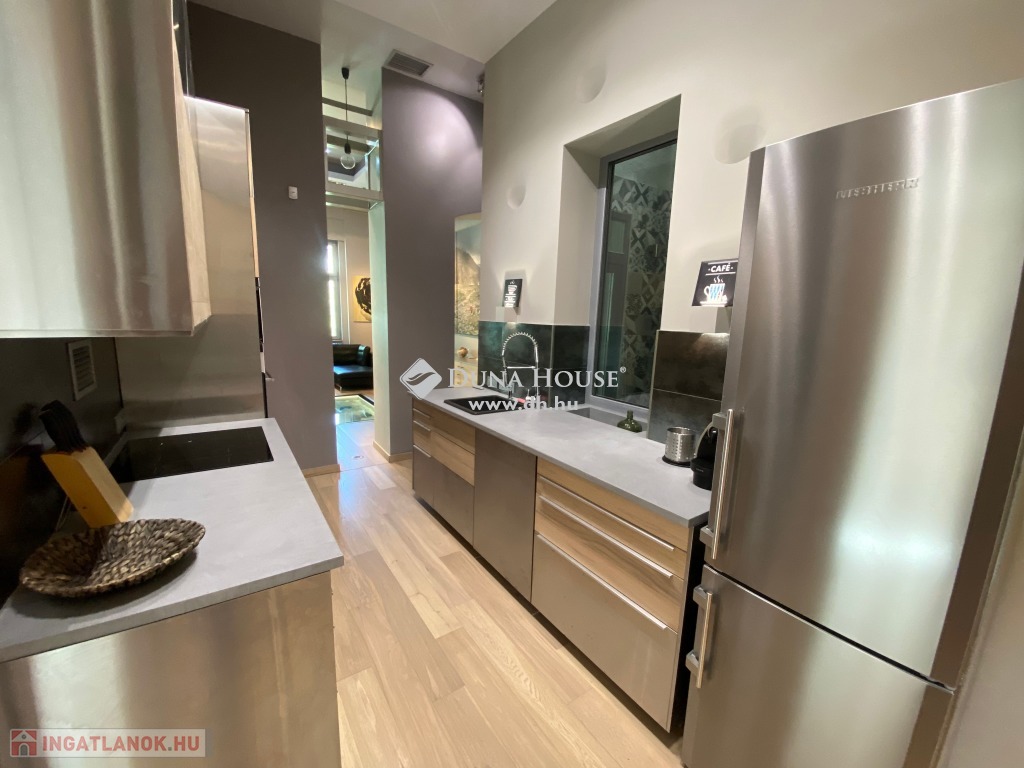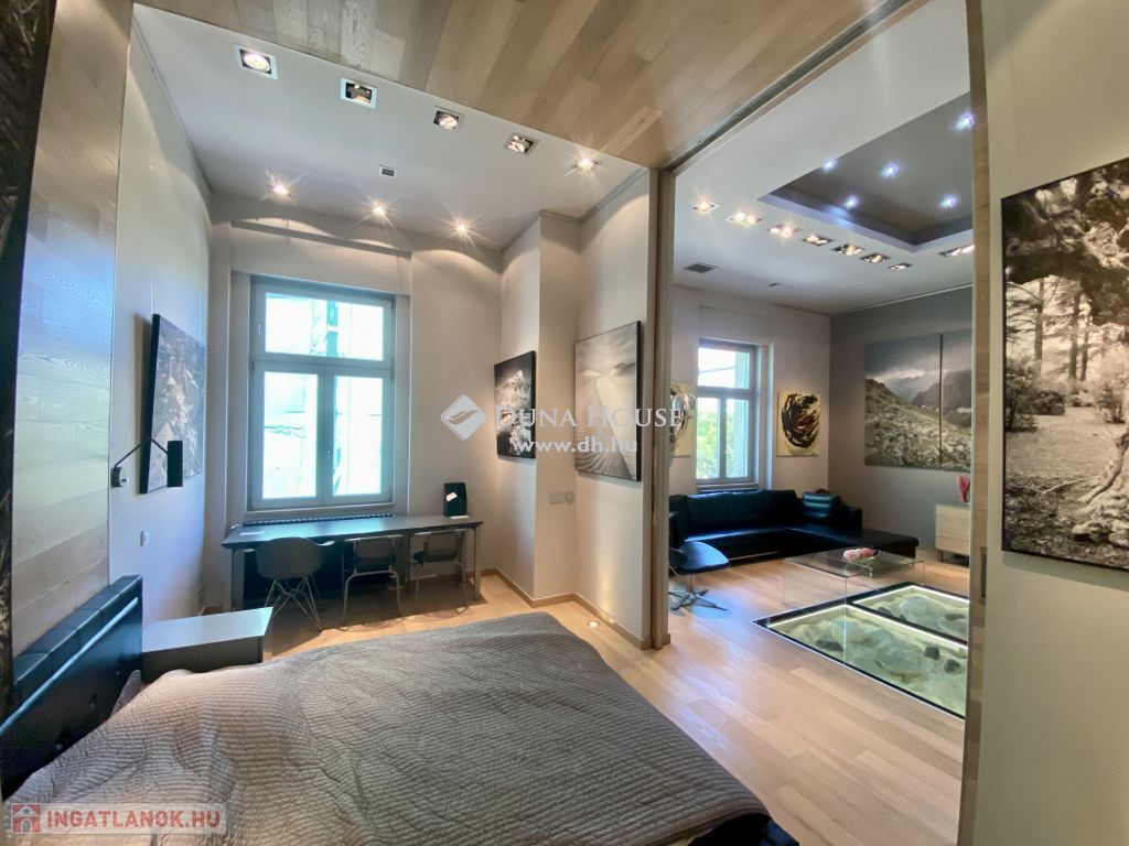 Magas minőségben és igényesen berendezett lakás Budapest szívében eladó.93 nm-es két hálószobával és két fürdőszobával rendelkező napfényes lakás teljesen bebútorozva kerül értékesítésre. Budapest szívében az 5. kerületben a József nádor téren található. A József nádor tér Budapest egyik legszebb részén helyezkedik el magasan infsastukurált boltok, közlekedés és intézmények tekintetében is.A lakásban két hálószoba található. A nagyobbik szoba a nappaliból és a fürdőszobából is megközelíthető tolóajtókon keresztül. A kisebbik szobában teljes értékű álló galéria található alatta beépített tárolóval. Megtalálható továbbá két fürdőszoba az egyik káddal és szaunával szerelve a másik zuhanyzóval. A nagyobbik fürdőszoba felett álló galéria található beépített szekrényekkel. A nappali napfényes és tágas ablakai a Hild térre néznek különlegessége a padlóba süllyesztett vitrin. A konyha gépesített és alig használt. Az ablakokon elektromos redőnyök vannak. A lakás riasztó rendszerrel szerelt, két bejárati ajtóval rendelkezik ezeken kívül minden ajtó tolóajtó.Amennyiben felkeltette az érdeklődését ezt a különleges lakás Budapest szívében keressen bizalommal.
