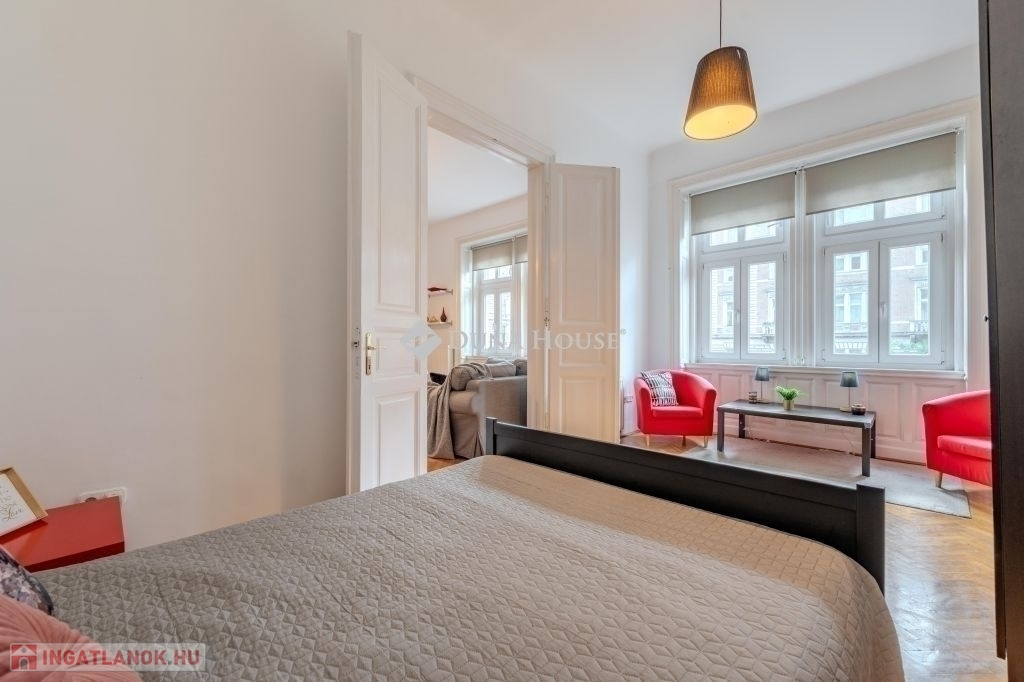 A rare opportunity to purchase a high-ceiling, stately apartment on one of Budapests most prominent boulevards, Teréz körút. This property is not just a home; its an immediately profitable, established short-term rental business with incredible future development potential!