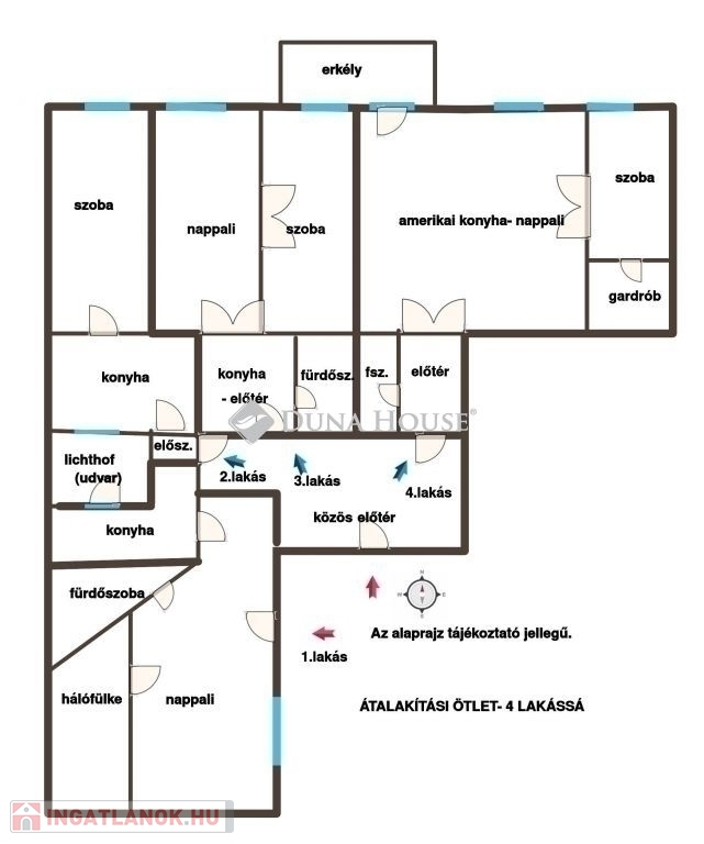 A lakás KÉT BEJÁRATOS, könnyedén 2-3-vagy akár 4 lakássá is osztható!