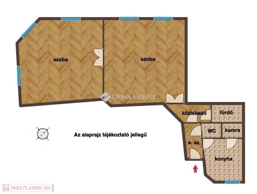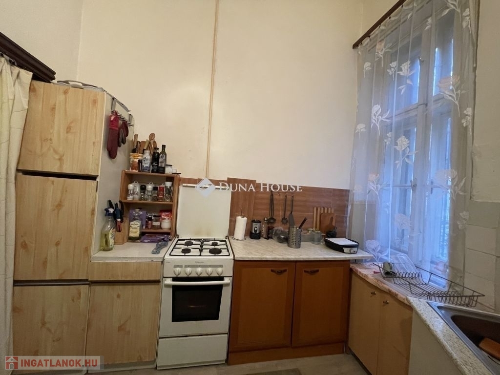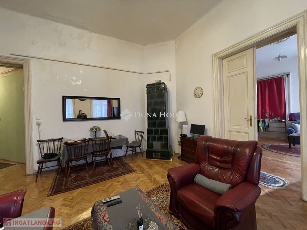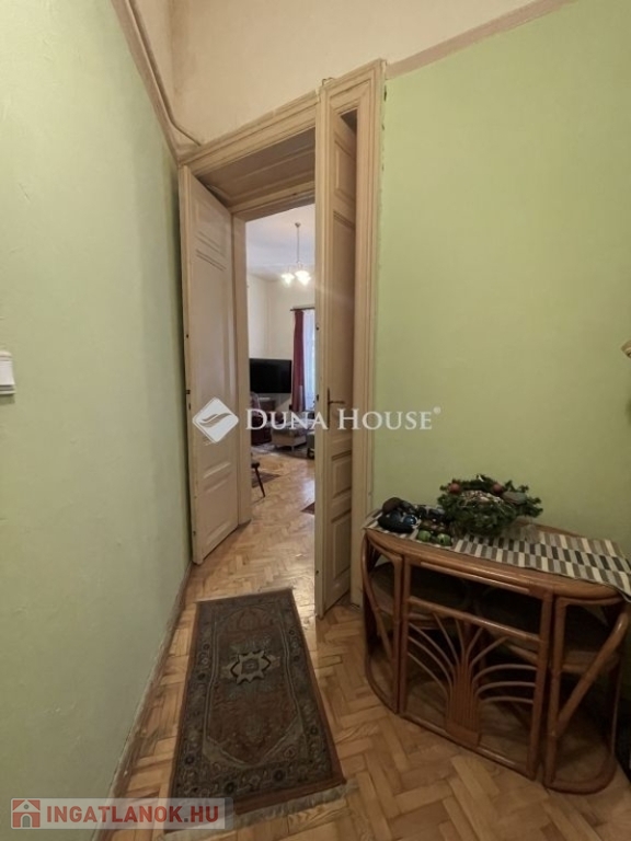 A jól karbantartott, zöld udvarral rendelkező, liftes ház 1880-ban épült, a lakás az 1. emeleten található, zárt folyosóról nyílik. Az előtérből lépünk a konyhába, ami mellett kamra is található. A közlekedőből nyílik egy előtér, onnan a fürdőszoba és egy külön WC. Mindkét szoba tágas, a sarokszobából akár két helyiség is kialakítható. Fűtése kedvező, cserépkályhába épített villanyfűtés. A lakáshoz tartozik egy tároló a pinceszinten. A villanyvezetékek kb. 8 éve részben fel lettek újítva, 1 éve pedig mérőórákat cseréltek.