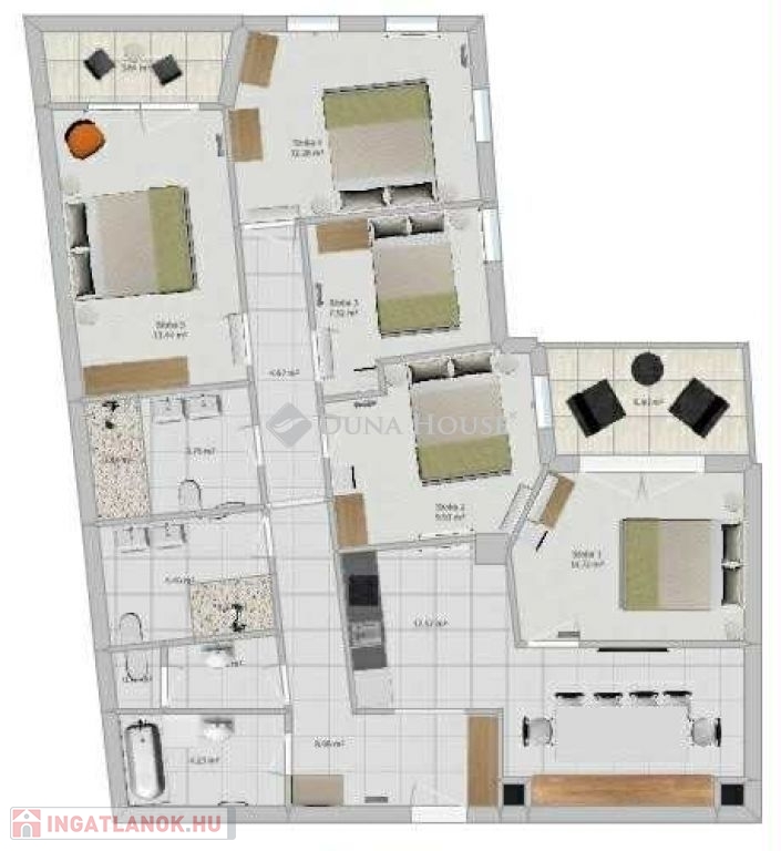 5 tágas, külön nyíló hálószoba