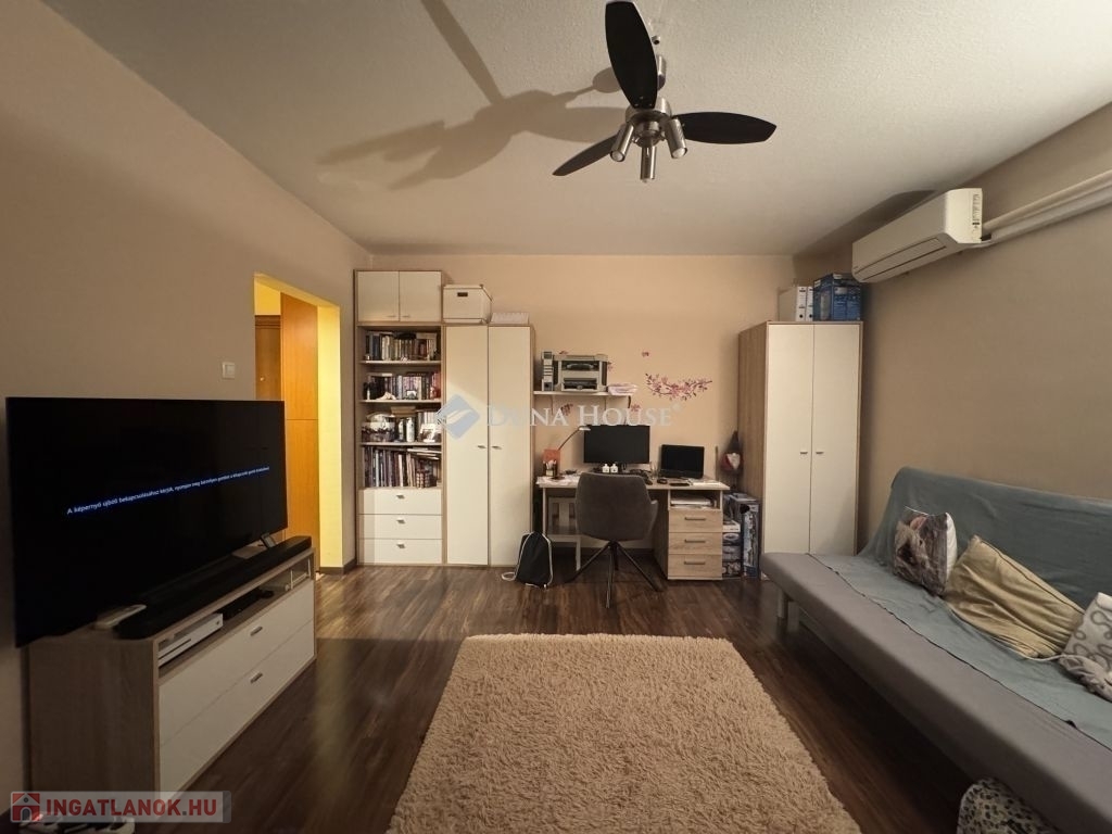 Eladó egy 10. emeleti, 1+2 fél szobás, erkélyes, csendes, világos, jó állapotú lakás beépített bútorokkal, 2 db klímával.