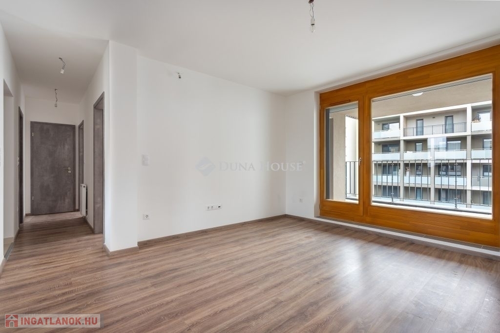 Lakás elrendezés és hangulatA lakás a XIII. kerületben, egy újépítésű lakópark hatodik emeletén található, déli tájolással, nappali + két hálós elosztással. A bejáratnál biztonsági ajtón lépsz be egy tágas előszobába, ahol kényelmesen elférnek az előszobabútorok, cipők, kabátok. Innen egy közlekedőn át jutsz a nappaliba, illetve a hálószobákhoz.A nappali nagy üvegfelülettel nyílik a terasz felé, fa nyílászárókkal, amelyek jól illenek a szürkés fa mintázatú laminált padlóhoz és a modern, sötétebb beltéri ajtókhoz. A nappalihoz ablakos amerikai konyha tartozik, így a konyha is kap természetes fényt. A konyha mellett külön háztartási helyiség/tároló kapott helyet, ahol a háztartási eszközök kulturáltan elpakolhatók.A nappaliból egy kb. 16 m²-es, részben fedett teraszra lépsz ki, amely a lakópark belső udvarára néz. A mérete alkalmas arra, hogy kinti étkezőasztalt, ülőgarnitúrát és növényeket is elhelyezz, így ténylegesen használható kültéri élettér. A hatodik emeleti magasság és az elhelyezkedés miatt a terasz intim, nincs közvetlen belátás a szomszédos lakásokból.A két hálószoba külön nyílik a közlekedőről, mindkettőben fa keretes ablakok vannak a terasz irányába, egységes, semleges padlóburkolattal. Jó arányú, jól bútorozható szobák, hálóként, gyerekszobaként vagy dolgozóként is jól használhatók.A lakás egyik erőssége a két, külön kialakított fürdőszoba, mindkettőben WC-vel. Az egyikben kád található, a másikban üvegfallal határolt zuhanykabin. A falakon modern, fehér, részben textúrált csempék vannak, nagyobb formátumú, semleges padlólapokkal. Mindkét fürdőszoba ablakos, természetes fénnyel és szellőzéssel, törölközőszárítós radiátorral.Az egész lakás színvilága visszafogott és egységes: fehér falak, fa hatású padló, szürke ajtók, fehér kerámia és króm szerelvények. Ez megkönnyíti a berendezést, szinte bármilyen stílus jól illeszthető hozzá. A lakás új állapotú, üres, azonnal költözhető.Épület és környezetA lakás modern, liftes, újépítésű lakóparkban található, szellős beépítéssel és nagy, gondozott belső kerttel. A lakóépületek a zöld udvar köré szerveződnek, a lakás ablakai és a terasz is erre a belső kertre néznek, így a mindennapi látvány inkább zöldfelület, mint forgalmas utca. A belső udvar rendezett, kialakított növényzettel, gyepfelületekkel, a ház egésze rendezett, egységes, mai megjelenésű.A lépcsőházak és közös terek tiszták, átgondoltan szervezettek, a lift a garázsszinttől a felső szintekig közlekedik. A környék városi életmódra alkalmas: bevásárlás, szolgáltatások, éttermek, a belváros és a nagyobb közlekedési csomópontok rövid sétával vagy néhány megállóval elérhetők. Aki nem akar minden nap autóba ülni, annak ez jól tervezhető lokáció.Kinek ajánlott és miért érdemes megnézniAz elrendezés, a két fürdőszoba és a nagy terasz miatt a lakás jó választás lehet fiatal párnak, akik külön hálót, nappalit és egy plusz szobát keresnek dolgozónak vagy gyerekszobának, illetve kisgyermekes családnak, akiknek fontos a zárt, zöld belső udvar és a praktikus, jól pakolható terek. Azoknak is jó megoldás, akik részben vagy teljesen otthonról dolgoznak, és szükségük van egy csendes, elkülöníthető szobára.Ha olyan új építésű, háromszobás lakást keresel, amelyben nagy terasz, két ablakos fürdőszoba, rendezett belső kertre néző kilátás és semleges, könnyen berendezhető belső terek vannak, ezt az otthont érdemes személyesen is megnézni. Időpontegyeztetésért keress bizalommal.
