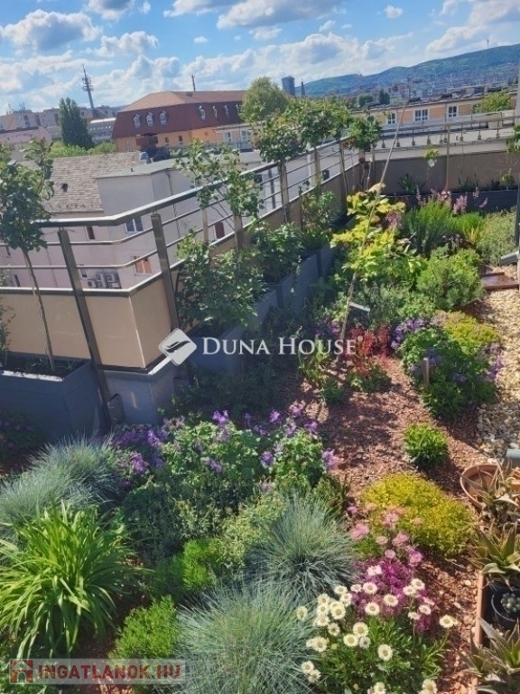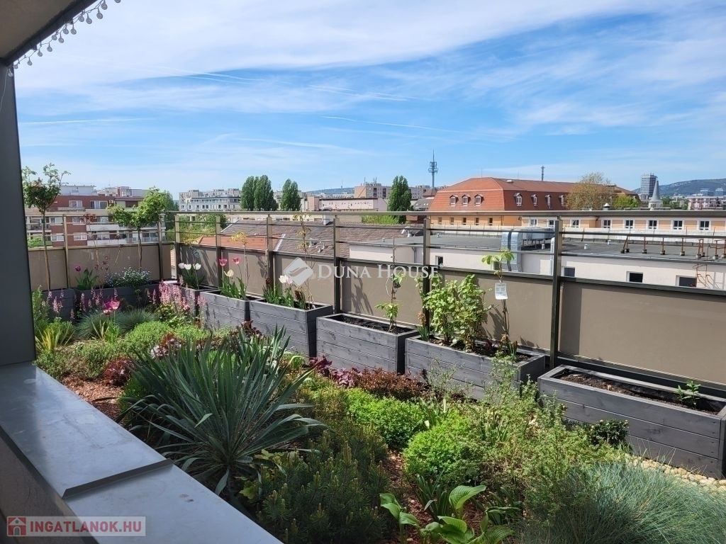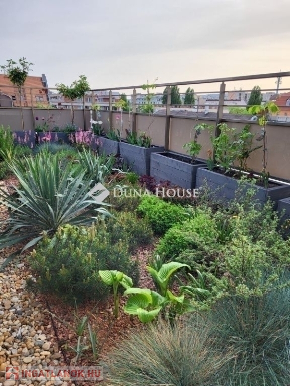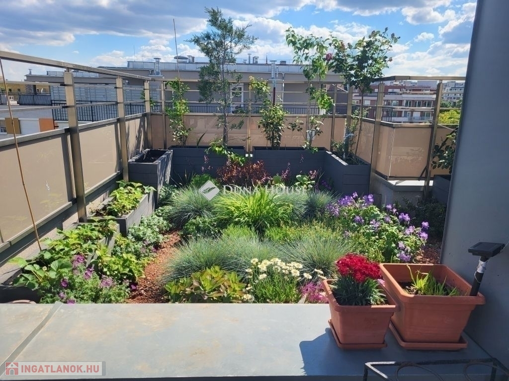 Két részből álló, (összesen 109 m2) 50 m²-es saját tetőkert igazi zöld oázis a város felett és