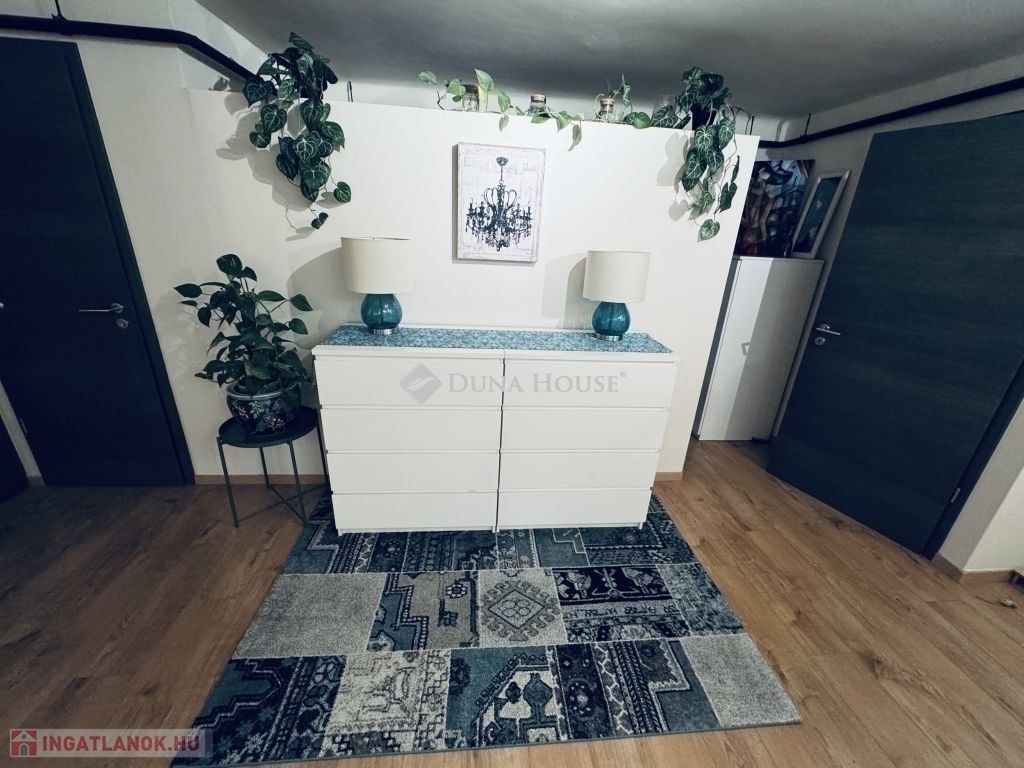 A mini loft emeleten az egész felvezető lépcső, illetve a zárt közlekedő (télikert) a társasház szabályainak megfelelve alakítható. Jelen esetben (videón látható) elszabadult a varázspálca, de bármikor vissza lehet térni a letisztult állapotához.