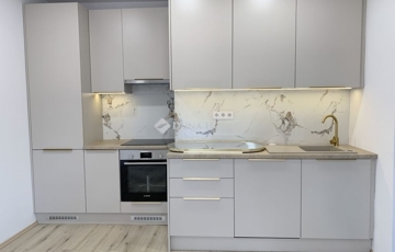 Az elektromos hálózat teljes körű megújítása mellett a lakás egy modern, beépített gépekkel ellátott konyhával büszkélkedhet. A fürdőszoba átalakítása során a legújabb trendeknek megfelelő berendezéseket és burkolatokat választották. A szobákban elhelyezett 12 mm vastag, vízálló laminált parketta nem csak esztétikailag vonzó, hanem praktikus is.
