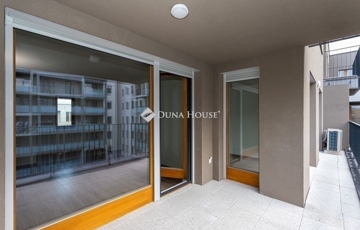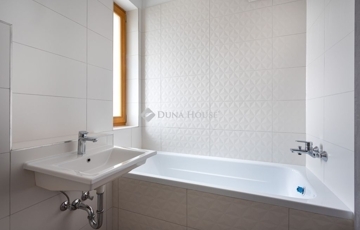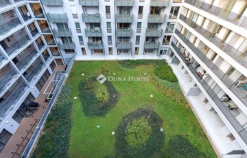 Lakás elrendezés és hangulatA lakás a XIII. kerületben, egy újépítésű lakópark hatodik emeletén található, déli tájolással, nappali + két hálós elosztással. A bejáratnál biztonsági ajtón lépsz be egy tágas előszobába, ahol kényelmesen elférnek az előszobabútorok, cipők, kabátok. Innen egy közlekedőn át jutsz a nappaliba, illetve a hálószobákhoz.A nappali nagy üvegfelülettel nyílik a terasz felé, fa nyílászárókkal, amelyek jól illenek a szürkés fa mintázatú laminált padlóhoz és a modern, sötétebb beltéri ajtókhoz. A nappalihoz ablakos amerikai konyha tartozik, így a konyha is kap természetes fényt. A konyha mellett külön háztartási helyiség/tároló kapott helyet, ahol a háztartási eszközök kulturáltan elpakolhatók.A nappaliból egy kb. 16 m²-es, részben fedett teraszra lépsz ki, amely a lakópark belső udvarára néz. A mérete alkalmas arra, hogy kinti étkezőasztalt, ülőgarnitúrát és növényeket is elhelyezz, így ténylegesen használható kültéri élettér. A hatodik emeleti magasság és az elhelyezkedés miatt a terasz intim, nincs közvetlen belátás a szomszédos lakásokból.A két hálószoba külön nyílik a közlekedőről, mindkettőben fa keretes ablakok vannak a terasz irányába, egységes, semleges padlóburkolattal. Jó arányú, jól bútorozható szobák, hálóként, gyerekszobaként vagy dolgozóként is jól használhatók.A lakás egyik erőssége a két, külön kialakított fürdőszoba, mindkettőben WC-vel. Az egyikben kád található, a másikban üvegfallal határolt zuhanykabin. A falakon modern, fehér, részben textúrált csempék vannak, nagyobb formátumú, semleges padlólapokkal. Mindkét fürdőszoba ablakos, természetes fénnyel és szellőzéssel, törölközőszárítós radiátorral.Az egész lakás színvilága visszafogott és egységes: fehér falak, fa hatású padló, szürke ajtók, fehér kerámia és króm szerelvények. Ez megkönnyíti a berendezést, szinte bármilyen stílus jól illeszthető hozzá. A lakás új állapotú, üres, azonnal költözhető.Épület és környezetA lakás modern, liftes, újépítésű lakóparkban található, szellős beépítéssel és nagy, gondozott belső kerttel. A lakóépületek a zöld udvar köré szerveződnek, a lakás ablakai és a terasz is erre a belső kertre néznek, így a mindennapi látvány inkább zöldfelület, mint forgalmas utca. A belső udvar rendezett, kialakított növényzettel, gyepfelületekkel, a ház egésze rendezett, egységes, mai megjelenésű.A lépcsőházak és közös terek tiszták, átgondoltan szervezettek, a lift a garázsszinttől a felső szintekig közlekedik. A környék városi életmódra alkalmas: bevásárlás, szolgáltatások, éttermek, a belváros és a nagyobb közlekedési csomópontok rövid sétával vagy néhány megállóval elérhetők. Aki nem akar minden nap autóba ülni, annak ez jól tervezhető lokáció.Kinek ajánlott és miért érdemes megnézniAz elrendezés, a két fürdőszoba és a nagy terasz miatt a lakás jó választás lehet fiatal párnak, akik külön hálót, nappalit és egy plusz szobát keresnek dolgozónak vagy gyerekszobának, illetve kisgyermekes családnak, akiknek fontos a zárt, zöld belső udvar és a praktikus, jól pakolható terek. Azoknak is jó megoldás, akik részben vagy teljesen otthonról dolgoznak, és szükségük van egy csendes, elkülöníthető szobára.Ha olyan új építésű, háromszobás lakást keresel, amelyben nagy terasz, két ablakos fürdőszoba, rendezett belső kertre néző kilátás és semleges, könnyen berendezhető belső terek vannak, ezt az otthont érdemes személyesen is megnézni. Időpontegyeztetésért keress bizalommal.