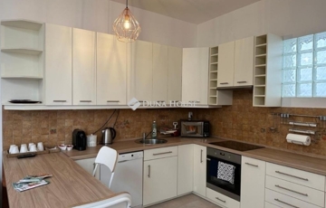 A tágas nappalikonyhaétkező modern burkolatokkal és minőségi beépített bútorokkal készült, galériával bővítve. Több hálószoba, két (2024-ben felújított / részben megújított) zuhanyzós fürdőszoba, gardróbmosókonyha és tárolási lehetőségek szolgálják a kényelmet.