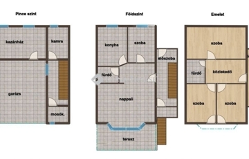 Eladó a 2/A kerületben csendes, nyugodt utcában egy 162 nm-es sorházi lakás.A telek 1004 nm, amin két lakás van, osztatlan közös tulajdon, ügyvédi használati megosztó szerződéssel.Előkert, hátsókert 220 nm, gyümölcsfákkal, teljesen elkerítve a szomszédtól.A ház alatt garázs, kazánház, mosókonyha zuhannyal, közlekedővel.A földszinten nyitott terasz, nappali, hálószoba, előszoba, konyha étkezővel, fürdőszoba WC-vel.A tetőtérben fürdőszoba WC-vel, s három külön nyíló szoba van.Műszaki jellemzők :A fűtés FÉG gázkazánnal történik, a földszinten padlófűtés, az emeleten radiátorok vannak. A melegvizet 300 literes Concept villanybojler biztosítja.A konyhában Teka páraelszívó, Whirpool 12 terítékes mosogatógép, Electrolux sütő, Gorenje gázfőzőlap biztosítja a kényelmes főzést.Az otthon külső kamerával felszerelt, riasztó, kaputelefon is van.Napkollektor csatlakozás ki van építve,Az egészséges ivóvizet beépített vízszűrő berendezés biztosítja. A házat 1990-ben építették, 2014- ben felújították.A felújítás során kicserélték a víz- és villanyvezetékeket, ajtókat ( lucfenyő ), ablakokat melyek szintén borovi fenyőből készült, kétrétegű szigeteléssel.A burkolatokat is kicserélték, felújították a padlófűtést, a ház kapott 15 cm-es kőzetgyapot szigetelést, a padláson pedig 20 cm-es ökológiai habosított papír szigetelést.A hely:Kiváló közlekedés, 10 perc sétára van a 164, 64, 257, 57 buszmegálló ,.Iskolák, rendelők, gyógyszertár, bevásárlóközpont a közelben.