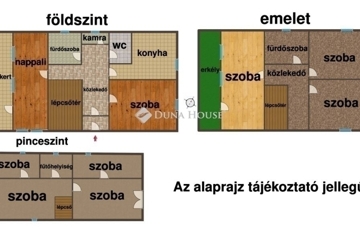 Az emeleti szinten további három külön nyíló szoba található, valamint egy kádas fürdőszoba. Az egyik helyiségből egy kényelmes méretű erkély is elérhető, amely tovább növeli az ingatlan komfortját.